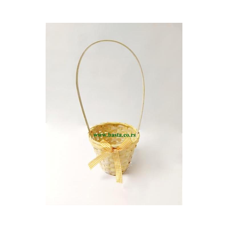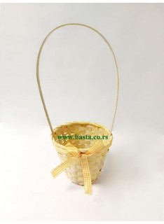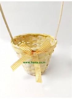 Pletena korpa sa mašnom u žutoj boji. Dužina korpe sa drškom je oko 36cm,Obim korpe je oko 14cm, dubina korpe je oko 11cm.