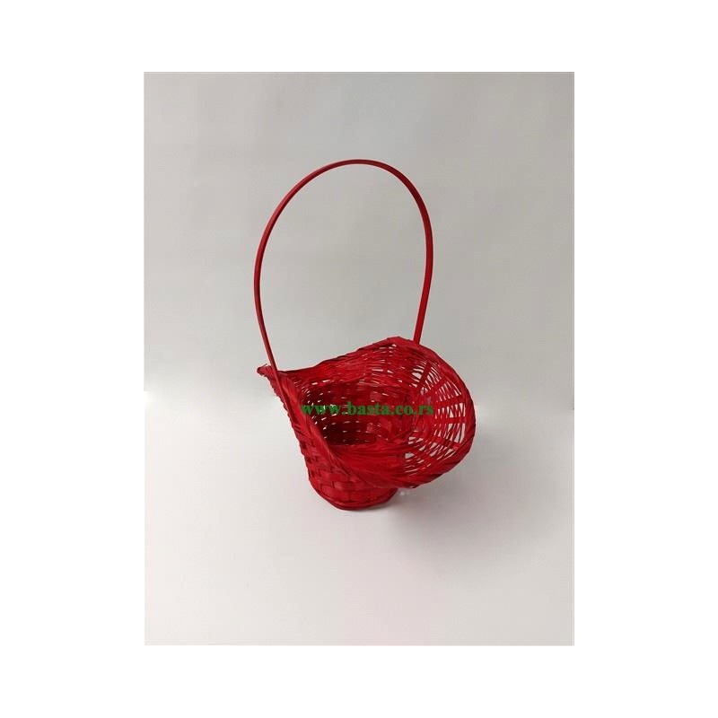 Pletena korpa sa oblikom šešira i drškom. Visina korpe sa drškom je oko 30cm,širina korpe je oko 16cm,a dužina je oko 22cm,a dubina korpe je oko 9cm.