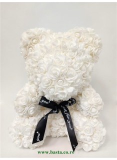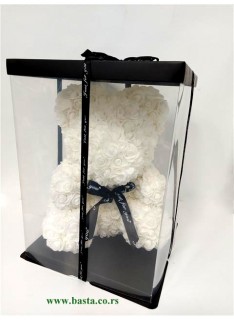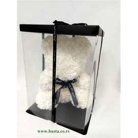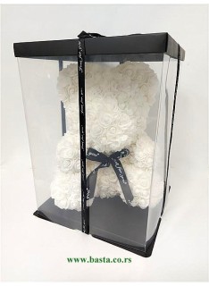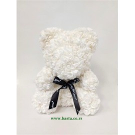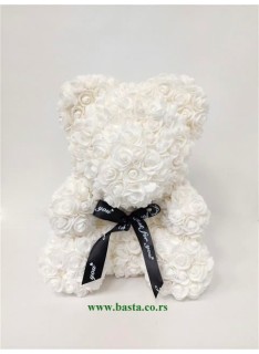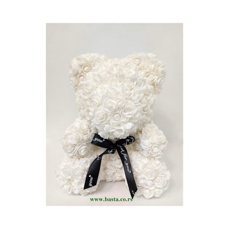 Meda od stiropora, obložen cvetićima bele boje, visina mede 35cm