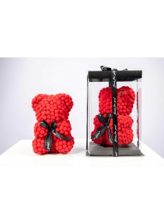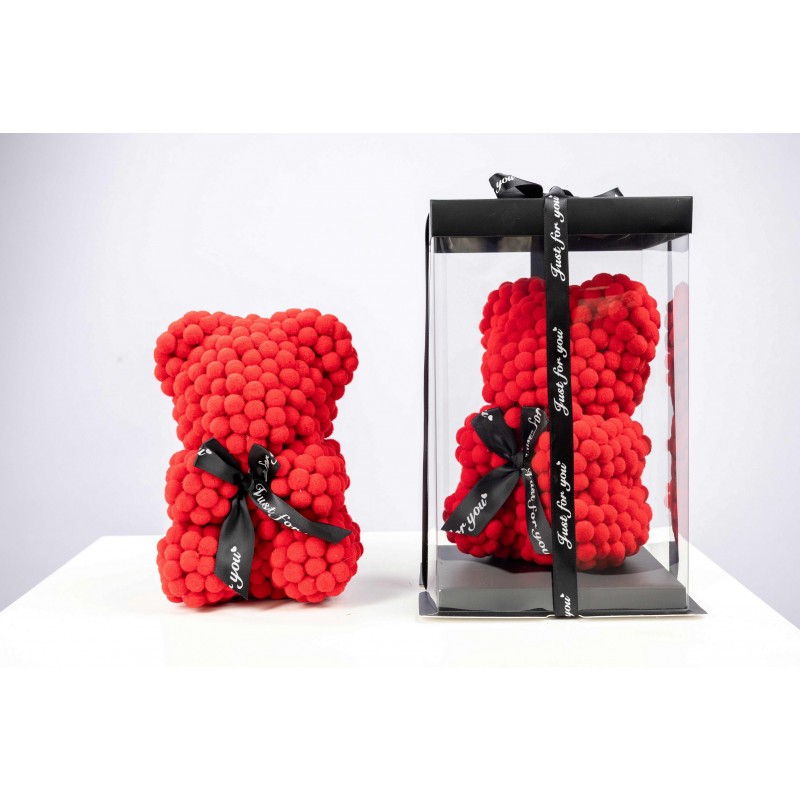 Meda od stiropora, obložen kuglicama crvene boje, visina mede oko 23cm