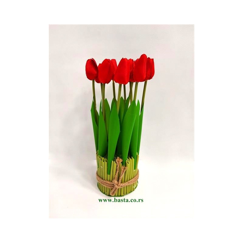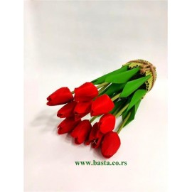Bunt tulipana 23 crveni,visina oko 30cm,glava cveta je oko 5cm ima 10 cvetova u buketu.